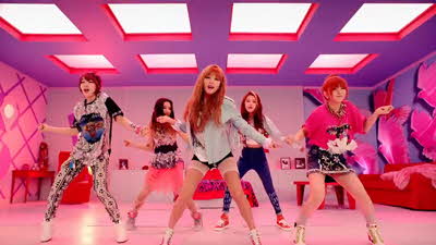 Sabina Tang: Conceptually a throwback to 4Minute’s early, pink-flaunting teen-brat incarnation, before the hard edges (visual and sonic) took hold — not to mention Hyuna’s sex-kitten apotheosis of ’11-’12. It’s got that drunken 8-bit electric slide, though, and snares in the right places, so I forgive it for not being a leap forward.