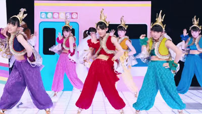 Iain Mew: They’re a sister group of Momoiro Clover Z, and bring the same kind of attitude of omnivorous fun to a slightly different set of sounds. I don’t know how the comparitive decrease in more-is-more is a reflection of the dance music they’re drawing from, but it makes six minutes a long time to stretch its initial rush of glee over.
